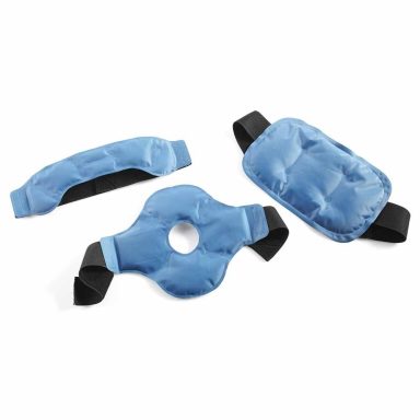 Einfach im Kühlschrank vorkühlen bzw. in der Mikrowelle oder im Backofen erwärmen. Set mit 3 unterschiedlichen Bandagen aus PCV und Nylon, mit Geleinlage.